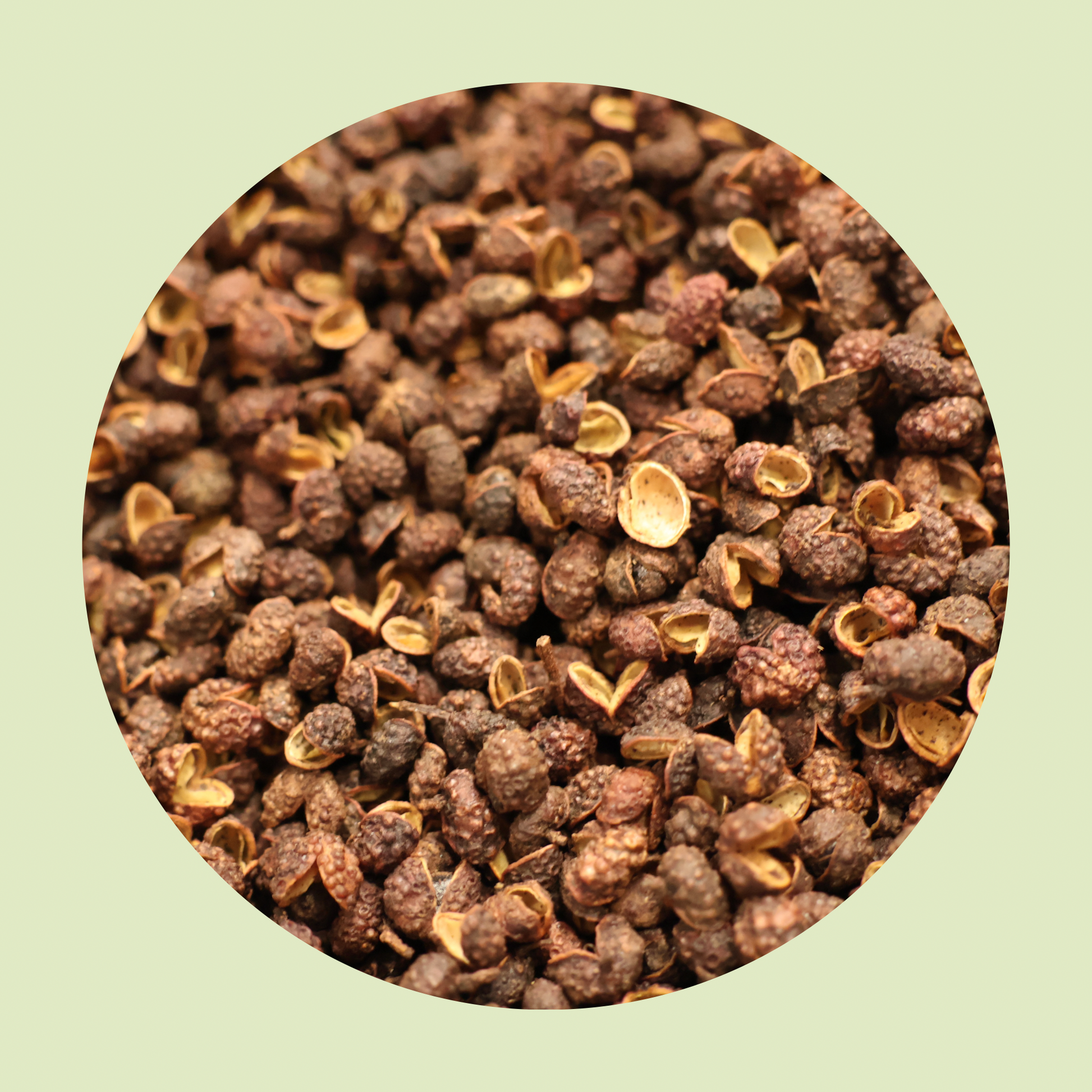 Bei uns im Gewürzhaus Antiochia findest du reinen Szechuanpfeffer, sorgfältig verlesen: Nur die rot-braunen Samenschalen werden verwendet, die kleinen schwarzen Körner im Inneren, die oft bitter schmecken, sortieren wir aus.